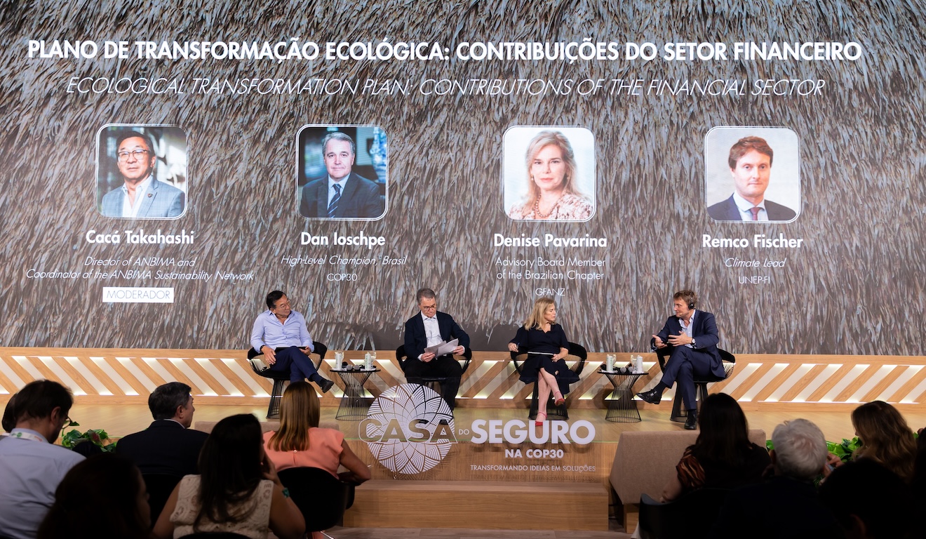 O seguro é peça-chave na construção da nova economia brasileira – mais verde, moderna e resiliente. Esse foi o tema central do terceiro dia da Casa do Seguro, nesta quarta-feira (12). Pela manhã, os painéis foram comandados pelo empoderador Allianz. À tarde, o Fórum de Finanças Sustentáveis na COP30 contou com falas de abertura de Dyogo Oliveira, presidente da CNseg, Carlos José da Costa André, presidente da Anbima (Associação Brasileira das Entidades dos Mercados Financeiro e de Capitais), e Luiz Carlos Trabuco, presidente do conselho diretor da Febraban (Federação Brasileira de Bancos).