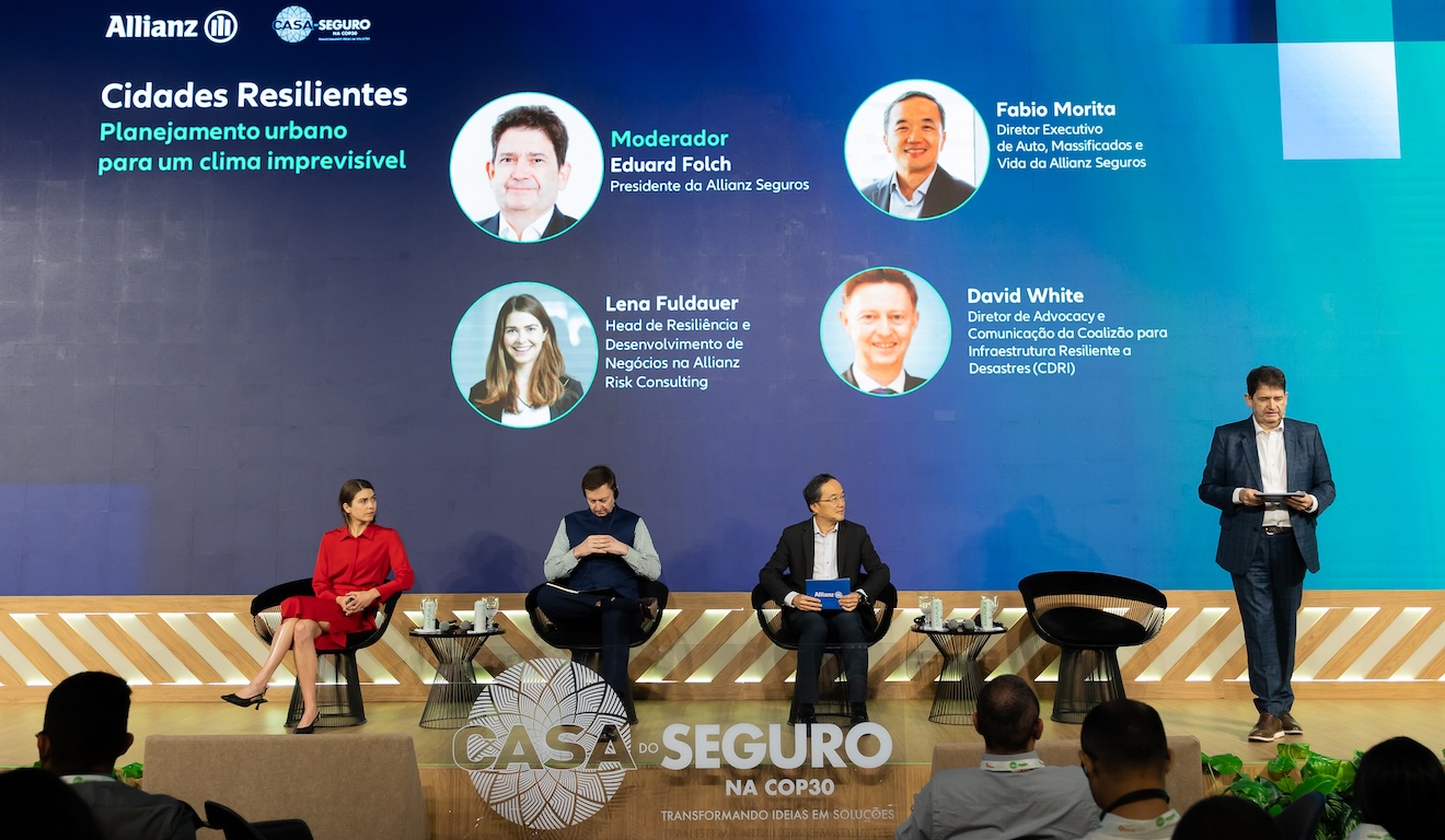 Cidades resilientes: Quando o assunto é clima, as cidades são peças fundamentais. Primeiro, porque contribuem para as mudanças do clima (impermeabilidade do solo, emissões de gases de efeito estufa, falta de áreas verdes). Por outro lado, concentram pessoas, riqueza e, consequentemente, o impacto dos riscos climáticos. O empoderador Allianz discutiu sobre o tema na parte da manhã.