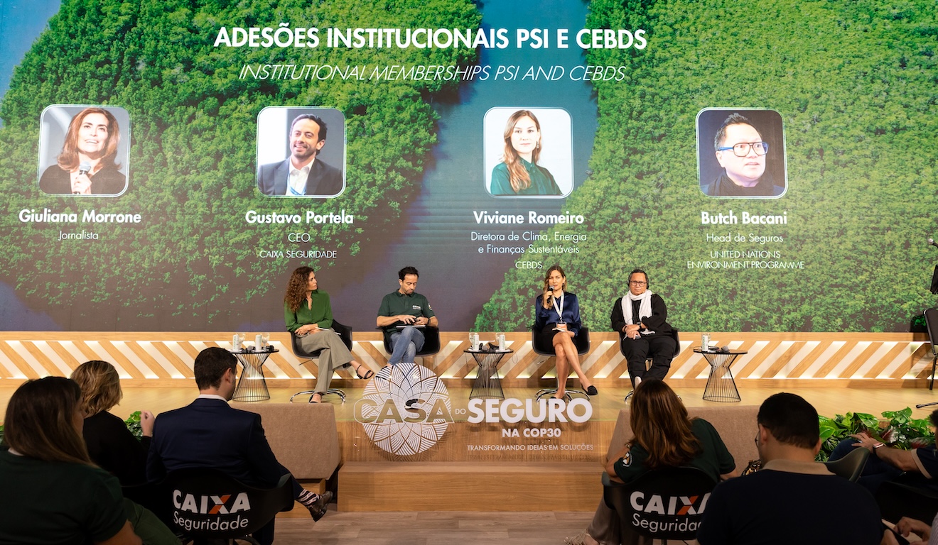 Adesão firmada: O empoderador do dia, a Caixa Seguridade, anunciou oficialmente sua adesão institucional aos Principles for Sustainable Insurance (PSI) do United Nations Environment Programme Finance Initiative (UNEP FI) e ao Conselho Empresarial Brasileiro para o Desenvolvimento Sustentável (CBEDS).